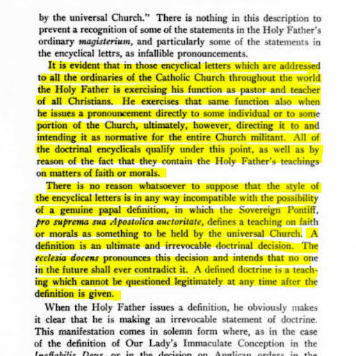 "... volvimos a referirnos a esta enseñanza con estas palabras "La potestad de jurisdicción que se confiere directamente por derecho divino al Sumo Pontífice llega a los obispos por ese mismo derecho, pero sólo a través del sucesor de Pedro, al que no sólo los fieles sino también todos los obispos están obligados a estar constantemente sujetos y a adherirse tanto por la reverencia de la obediencia como por el vínculo de la unidad."