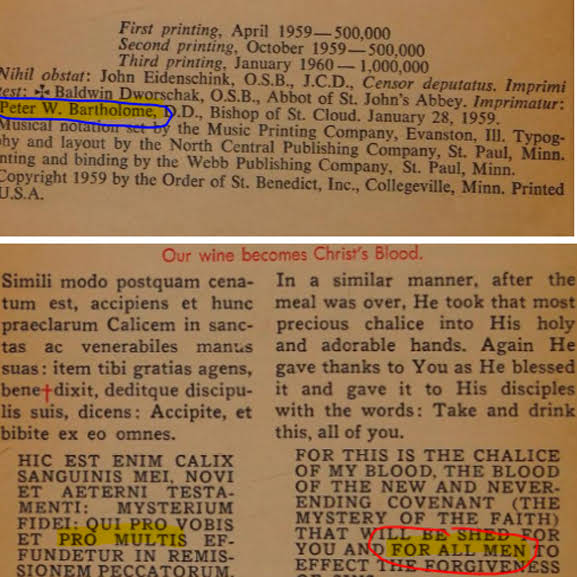 SIGUIENDO ESTÁS MISMAS LÓGICAS DE QUE LA MALA/ERRONEA/FALSA TRADUCCIÓN AL VERNÁCULO DE "PRO MULTIS" POR " TODOS LOS HOMBRES" DE UN DEVOCIONARIO DE LOS FIELES EN MINNESOTA, LA ABOLICIÓN DEL SACRIFICIO PERPETUO SE DARÍA YA EN TIEMPOS DE S.S.PÍO XII YA QUE SACERDOTES OMITÍAN LAS PALABRAS "MYSTERIUM FIDEI" EN LA CONSAGRACIÓN DEL CÁLIZ, ASÍ COMO QUE SE HABÍA OMITIDO EN UNA TRADUCCIÓN DEL NUEVO ORDEN DE LA SEMANA SANTA AL VERNÁCULO.