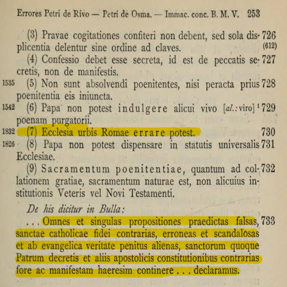 “Nos, declaramos (…) que las proposiciones precitadas son falsas, contrarias a la santa fe católica, erróneas, escandalosas, totalmente extrañas a la verdad de la fe, contrarias a los decretos de los santos Padres y a las constituciones apostólicas y que ellas contienen una herejía manifiesta”