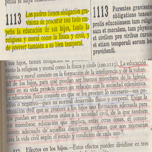 ¿Está vigente el canon 1113 que obliga a los padres a dar toda la educación? SÍ